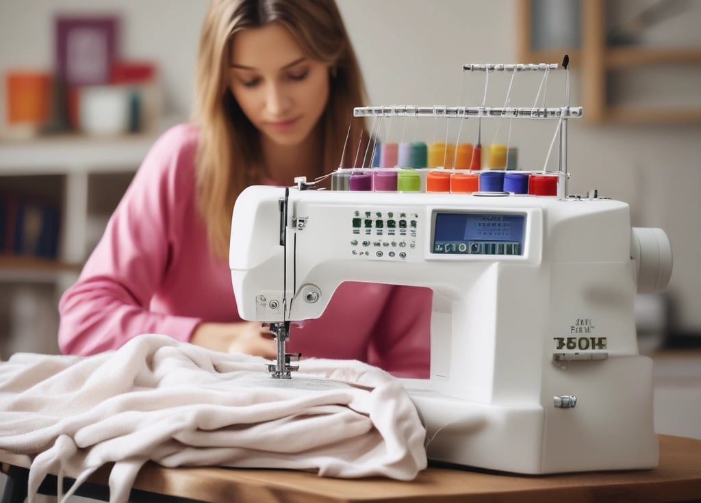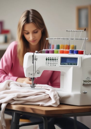 A sewing machine stitching intricate costume details.